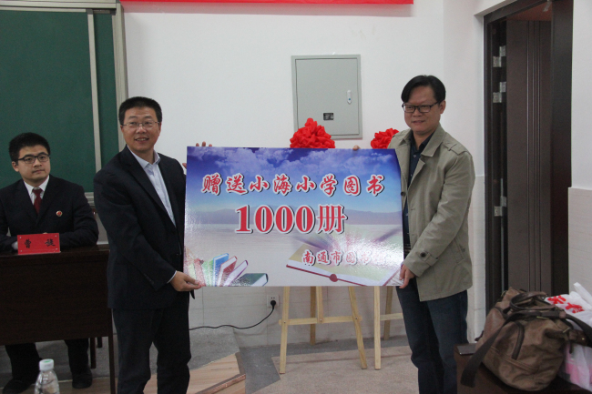 南通市第三届公共文化服务展示月期间,市文化行政综合执法支队与市图书馆于10月14日下午在小海小学联合举办“不忘初心 筑梦未来”主题活动。小海街道沈波、钮善红书记、小海小学曹立聪校长、小海星富社区虞伟书记出席会议。