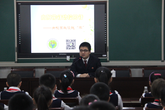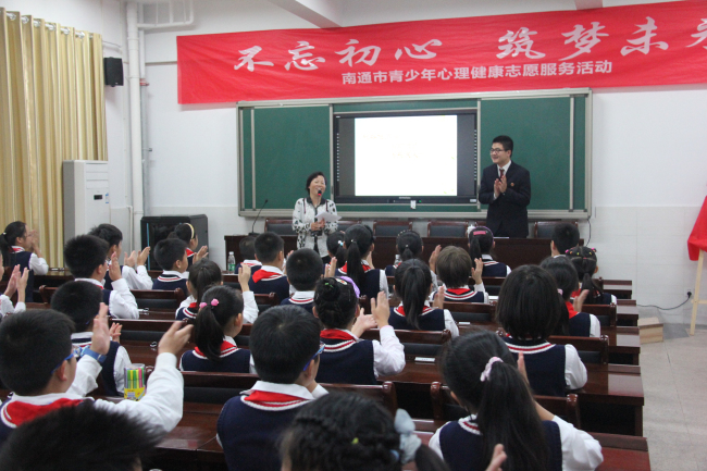 活动现场,市支队在星富社区和小海小学设立“南通市青少年心理健康志愿服务中心分站”,并举行揭牌仪式。市图书馆向星富社区捐赠万元图书,为社区学生提供丰富的精神食粮。此次活动,还特邀开发区检察院未检处检察官为学校师生主讲“向校园欺凌说不”讲座,围绕目前社会热点“校园欺凌”问题,通过大量的案件实例,讲述校园欺凌产生的原因、教导学生如何增强法律,进行自我防卫,并现场与同学们进行互动,反响热烈。五6班徐嘉仪同学接受采访,表示参加了本次活动收获很大:学到了更多的法律知识,知道了要从自己做起,不去欺凌、伤害别人,做一个宽容友善的人。