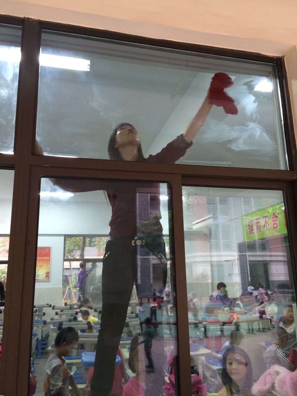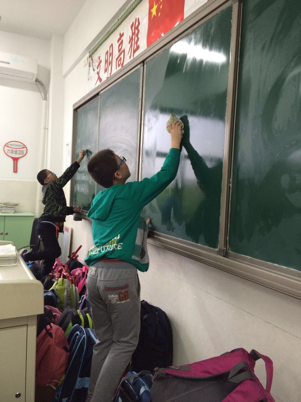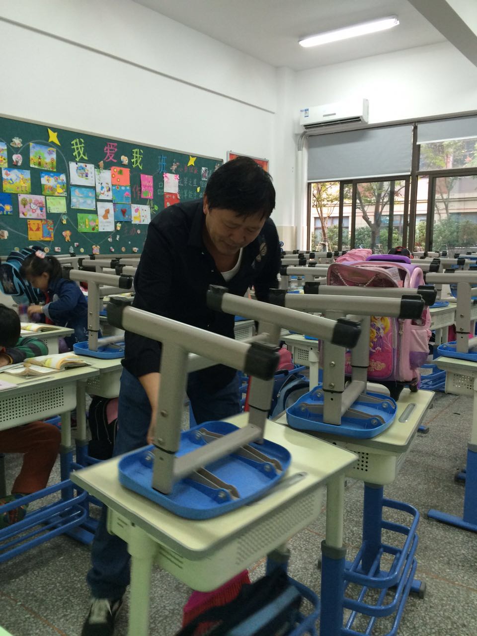 在活动中,班主任发挥了重要作用,不仅合理分配任务,更身体力行,亲力亲为。站在台子上擦玻璃,帮学生搬椅子,用拖把再次清理地面。同学们也分工合作,搬桌椅,擦窗户,擦墙面,扫地,拖地,擦黑板,整理讲桌,摆放图书角书籍,认真地清理每个角落。