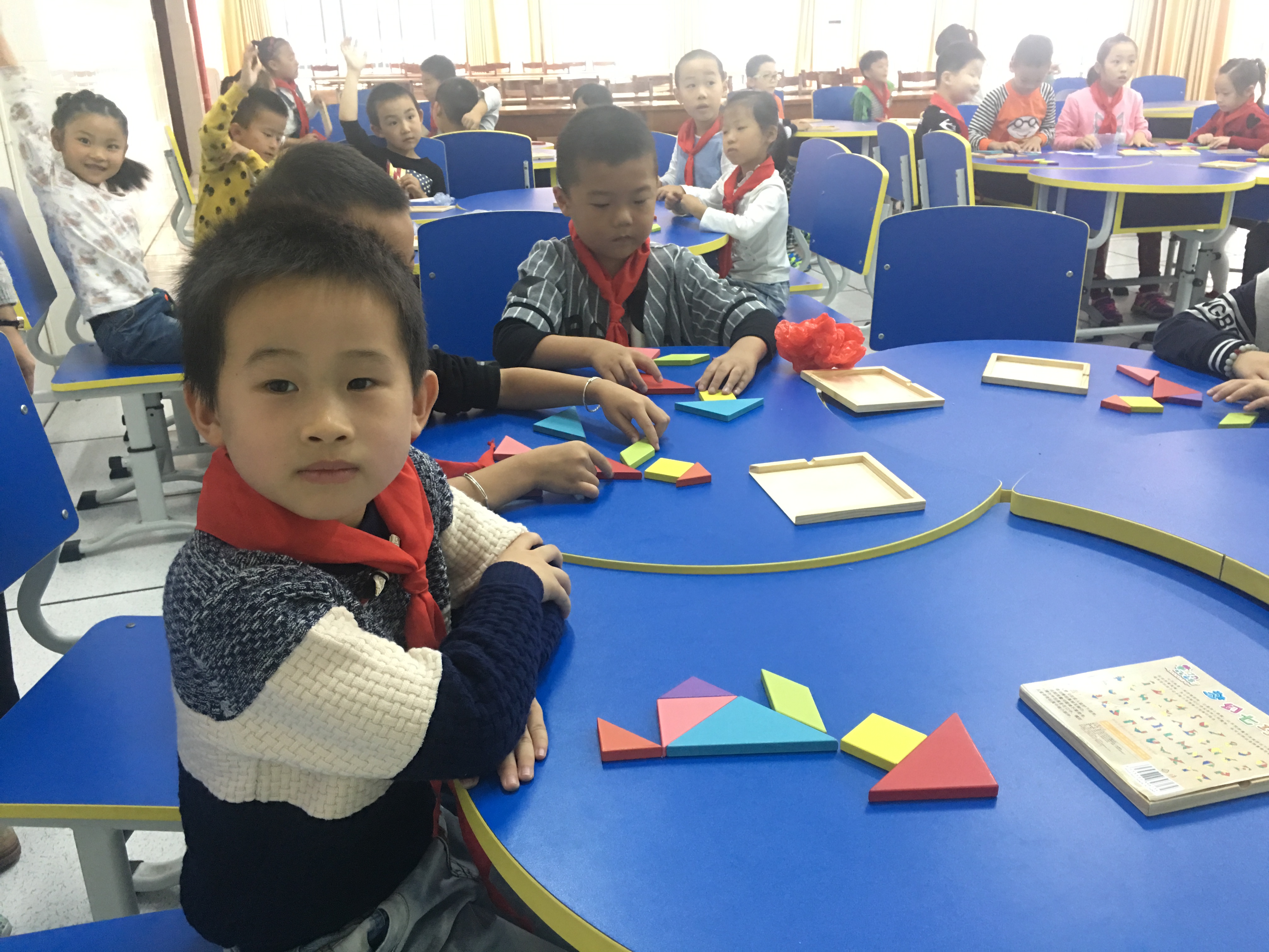 七巧板是我国一种传统的智力玩具,它可以拼出千变万化的图形,为了让学生更好地了解用七巧板组合图形的不同拼法,发展创新意识、空间观念和形象思维,10月17日,我校在数学节活动中开展了一年级组的“智力七巧板”拼图比赛。