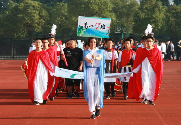 为了检阅班级风采,考核班级创意,本届体育运动会开幕式特意安排了班级入场表演的项目。当各班以自己独有的服饰打扮、队形变化、行进方式、节目展示出现在主席台及全体学生面前时,场上响起一阵阵热烈的掌声和欢呼声。入场表演进行了整整一个半小时。