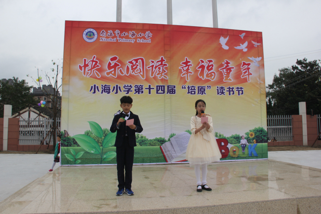 金秋十月,丹桂飘香,在这收获的季节里,小海小学迎来了第十四届培原读书节开幕式。伴随着孩子娓娓动听的朗诵,目送缓缓飞向蓝天的气球,开幕式正式拉开序幕!