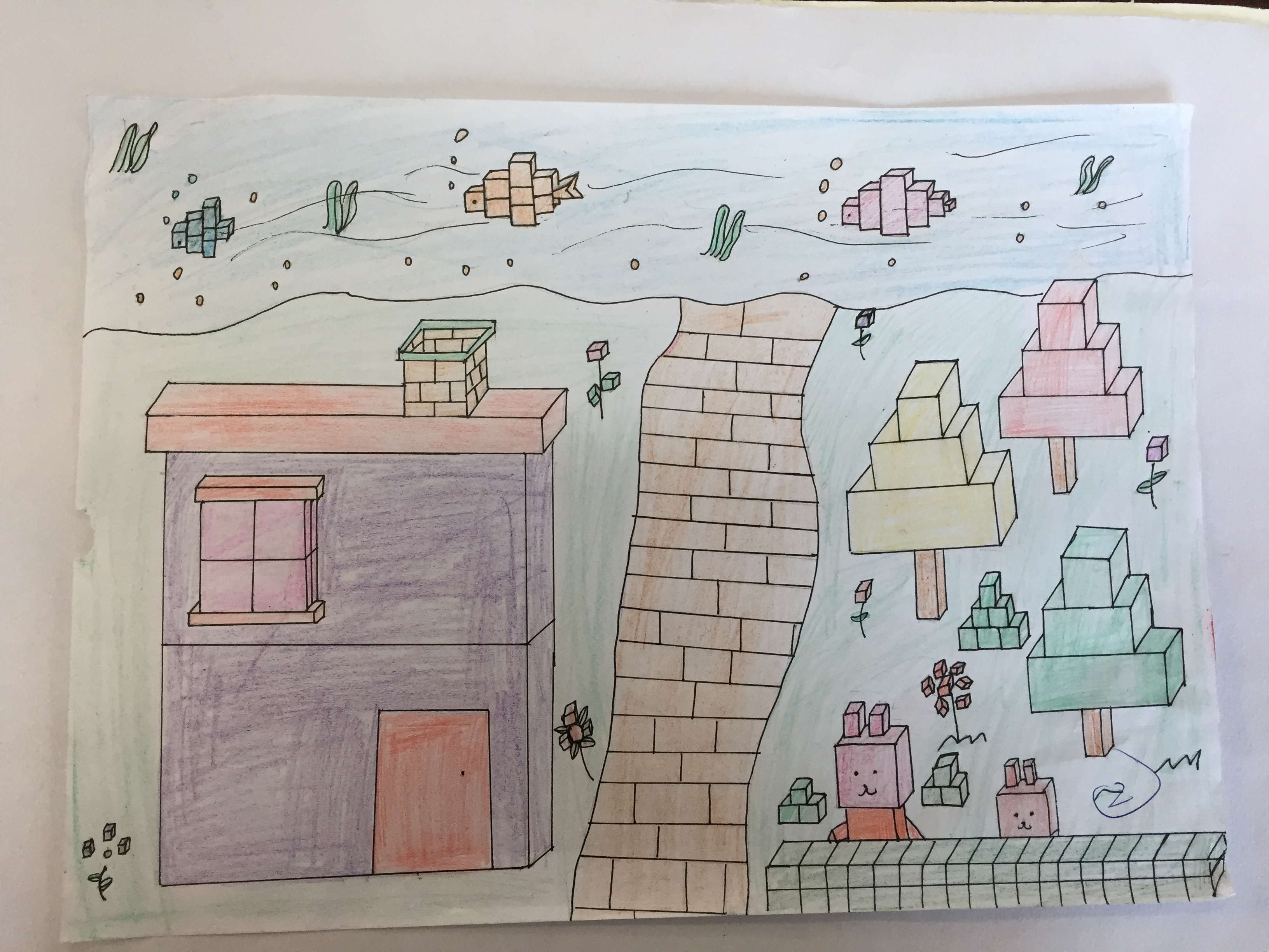 其中六(1)班徐诗怡绘画的“创意立体图形”深受大家的喜爱,形象、生动、逼真,色彩分明,给人一种想象的空间,看得大家啧啧赞叹。六(4)班陈小燕绘画的海底世界,想象丰富,创意奇特,用不同的立体图形构建了一副风景优美、造型奇特的画。