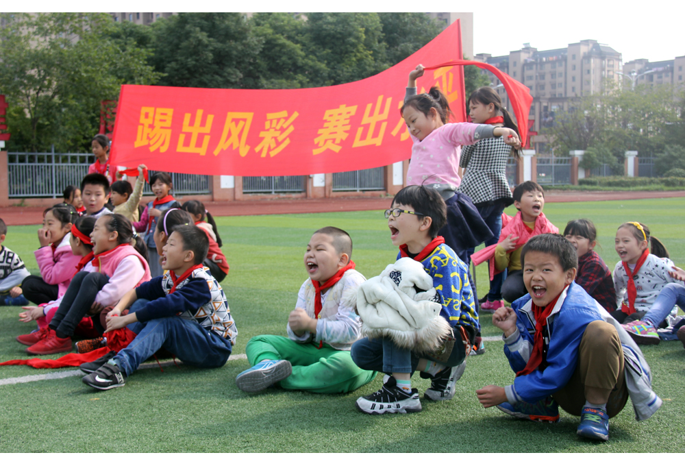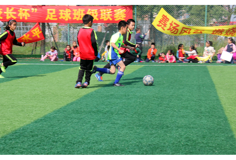 每场比赛都非常激烈,运动场上,运动员们热情高涨,断球、传球、射门……运动场外,孩子们为自己的班级呐喊助威,有的挥舞着标语,有的手舞足蹈,“加油!加油!”呐喊声此起彼伏,整个校园被足球的热情完全点燃。