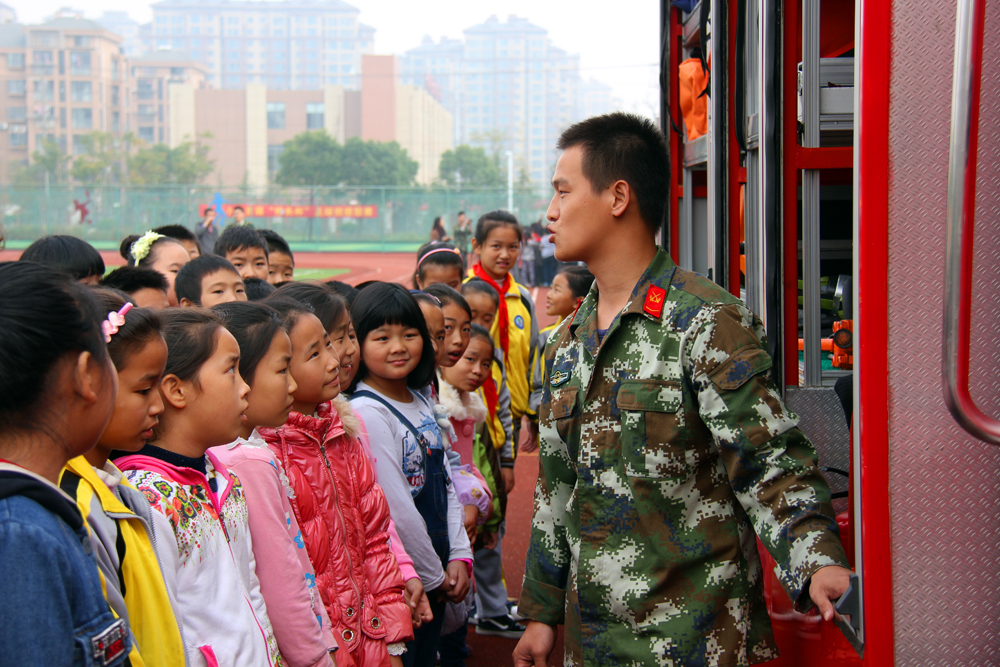 11月7日上午8:00,学校消防安全共建单位——南通开发区景兴路消防中队官兵把消防车开进竹行小学校园,隆重开展“119消防宣传日”现场宣传活动。在升旗仪式后,中队指导员李林叔叔结合校园人员密集、学生年龄偏小等特点,着重向同学们介绍了一些基本的防火、灭火、逃生自救常识,并通过列举大量的实例向同学们讲解防火自救的重要性。