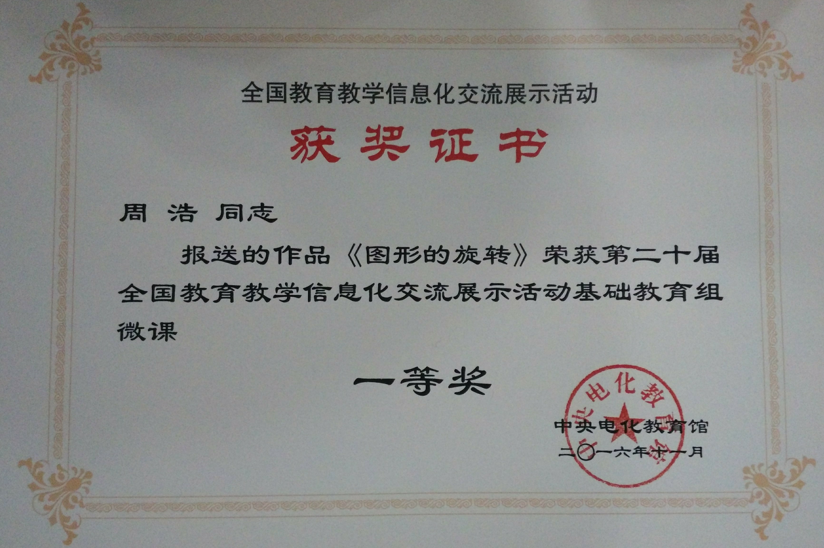 由教育部指导、中央电化教育馆主办的第二十届全国教育教学信息化交流展示活动现场决赛于2016年11月10日至12日在北京举行。本届大赛共收到参赛作品4589件,经过技术测试、专家第一轮评审,共选出460件作品参加现场决赛,周浩老师作为江苏省唯一入围参加全国决赛的小学数学微课作品选手,经过现场陈述、专家提问等环节,力克群雄,最终喜夺一等奖。这是开发区近几年来加强教师信息化培训的成果,也是苏通科技产业园区加强园区实验小学数字化校园建设取得的初步成效,更是苏通科技产业园区实验小学加强教师队伍建设的结果。
