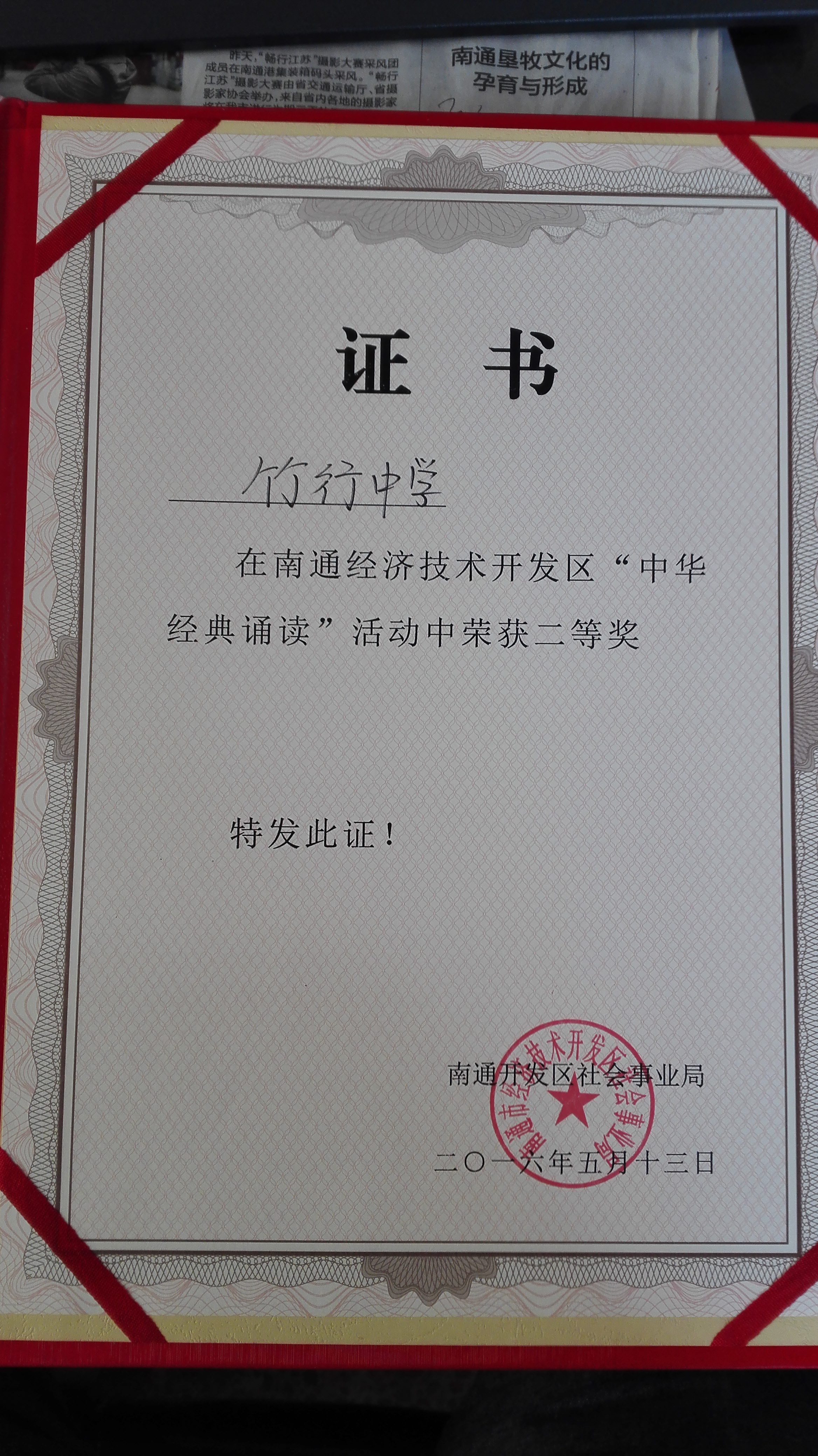 我校初三4班(班主任:杭珏)被评为“南通市优秀学生集体”