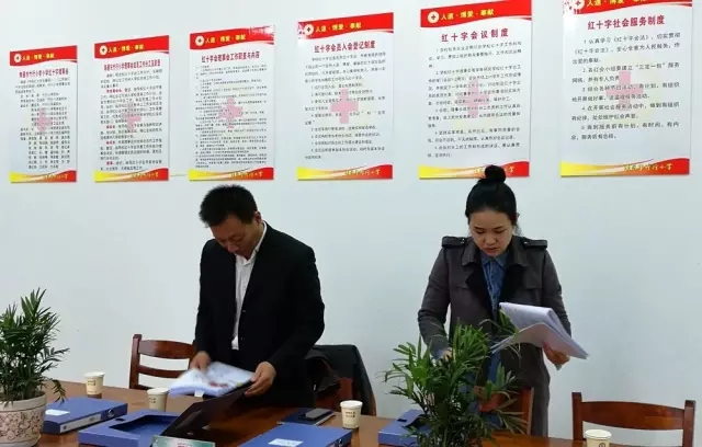 朱部长介绍了本次检查验收的背景和目的,沙处长认真查阅了我校红十字工作台账,充分肯定了我校在红十字青少年会员的发展、日常卫生救护培训和红十字会管理工作中取得的成绩,同时也对我校今后开展红会工作提出了宝贵意见。