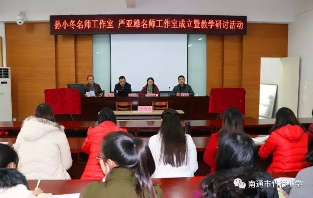 12月7日,竹行小学隆重举行“孙小冬、严亚雄名师工作室”成立仪式。竹行小学朱军校长,特级教师孙小冬、严亚雄及名师工作室的相关成员,全体语文教师参加了整个活动。戴亚兵校长主持本次活动。