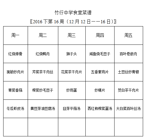 第16周菜谱