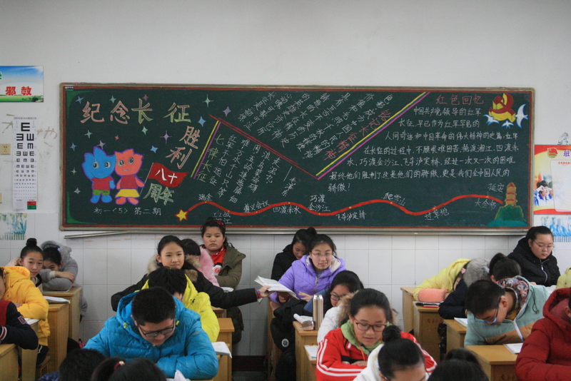 注:初一4班学生十分重视本期黑板报,在第一版不满意的情况,擦掉再次重出,虽因时间限制未能赶上评比,但精神可嘉,特此表扬!