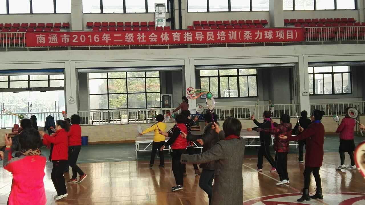 12月15-16日,南通市二级社会体育指导员培训柔力球项目在南通开发区青少年活动中心篮球馆开班。来自各县市区的近130余一线社会体育指导员参加此次培训,由国家级柔力球裁判员唐丽老师授课。