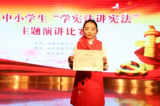 12月21日,“德法同行成长相伴”中小学生学宪法讲宪法主题演讲比赛在如东宾山小学隆重举行。本次比赛共有各县(市、区)教育局推选的30多位选手,分小学组、初中组、高中组分别在三个场地同时参加比赛。我校姬博雯以区第一名的成绩作为开发区代表参赛,并荣获一等奖。