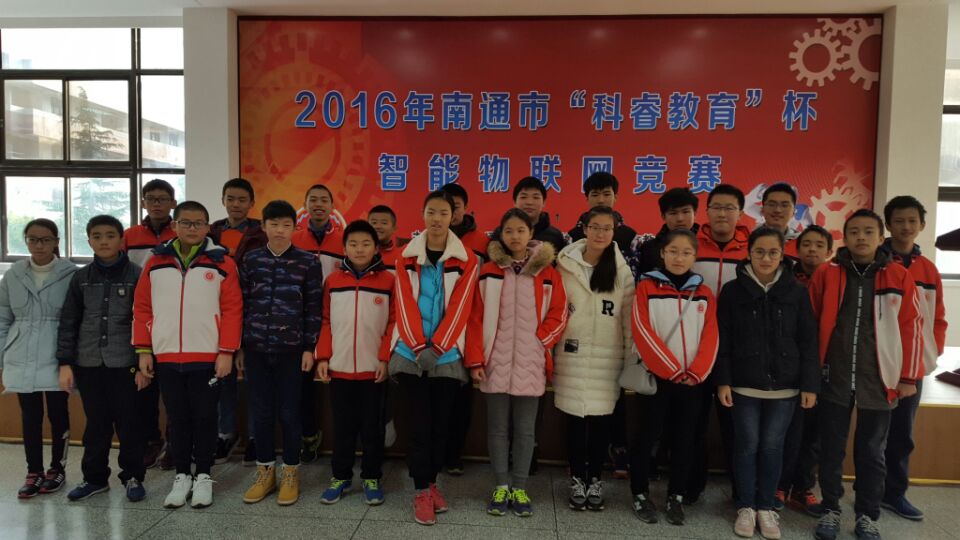 2016年12月23日,我校收到来自市教育局、市科协的喜讯:在2016南通市“科睿教育”杯智能物联网竞赛中我校再获佳绩,获得团体一等奖,14名选手获一等奖,9名选手分获二、三等奖。这次佳绩的取得,是我校一贯以科技强校为宗旨,重视学生科技素养的结果,也是信息技术教师团队教学成果和学生科技创新能力的又一次展示。