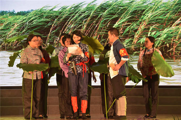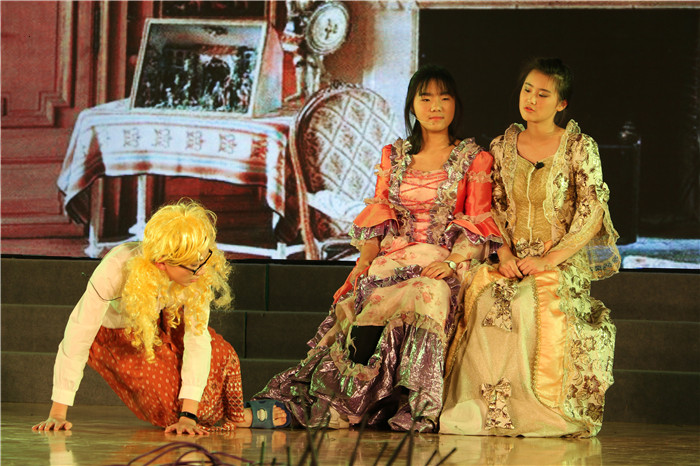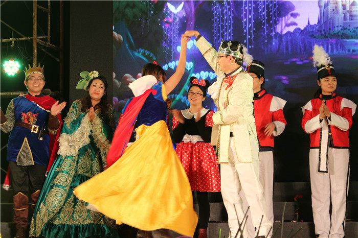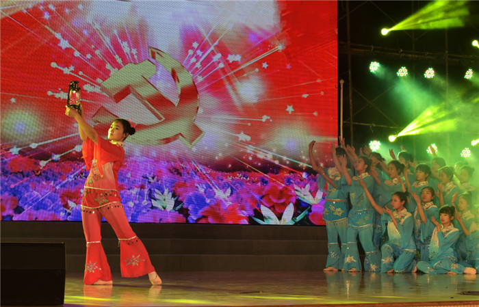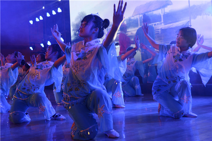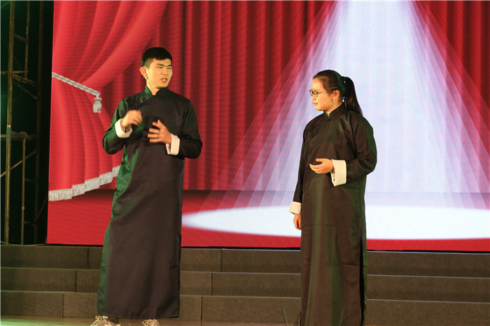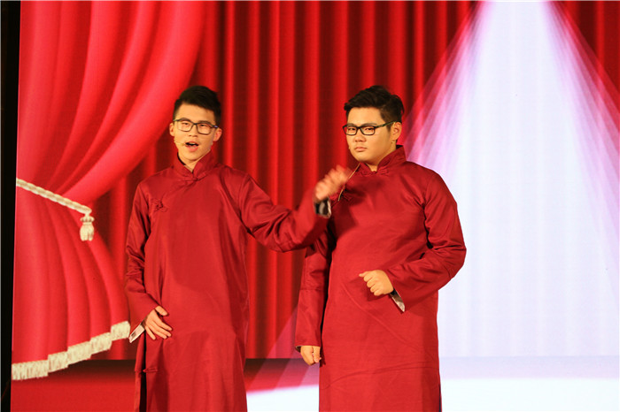 联欢现场气氛热烈,台下座无虚席,掌声雷动。其中,军训战斗歌曲大合唱震撼气势再现,使在场学生感同身受,忆起军训时的苦辣酸甜;小品《功夫》学生演技了得,逗得观众忍俊不禁;返校大学生的相声《古文新说》诙谐幽默,富有校园气息的桥段观众很有共鸣;拉丁舞《燃烧吧青春》时而婉约,时而奔放,将优美身姿融入节奏,带来美的享受;语文教研组的话剧《洪湖赤卫队》、英语教研组的舞台剧《白雪公主和七个小矮人》更是全员参与,场面恢宏,演技精湛,给观众带来视觉盛宴;化学教研组全体成员让大家领略了别有滋味的化学版《青花瓷》;数学教研组的《小鸡舞》则将晚会推入高潮,热烈的气氛感染了在场的每一位观众;大型舞蹈《南湖的船,党的摇篮》对所有师生进行了爱国主义教育,大家在欣赏优美舞蹈的同时铭记住了党的历史。