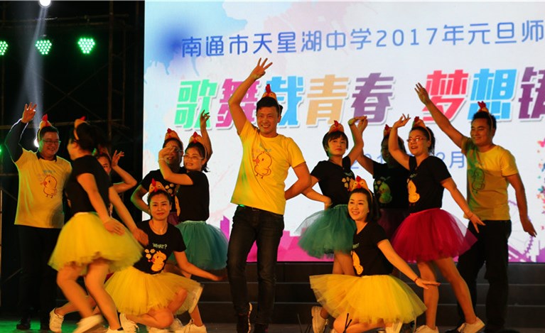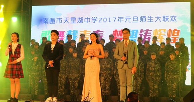 “2017 ,怀揣着璀璨梦想,我们会创造一连串天中的辉煌!”在主持人热情饱满的祝词下,12月29日晚,南通市天星湖中学学生社团成果展示暨2017年元旦师生大联欢在学校风雨操场精彩上演。开发区社会事业局黄裕若副局长、沈彬副局长、倪敏副局长,开发区社会事业局教育处季春华处长、郭其红主任,东方中学蒋子平副校长、姚敏副校长,天星湖中学家长委员会代表们莅临现场,与天中师生一起喜迎2017。