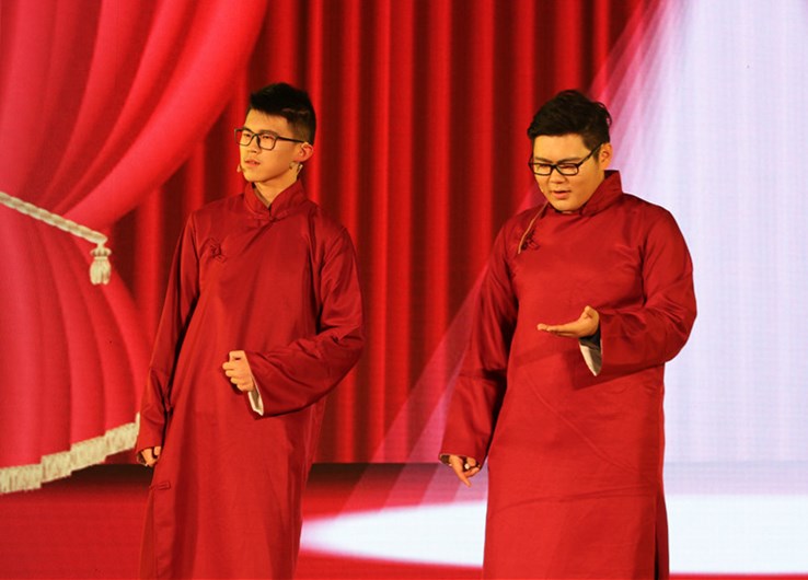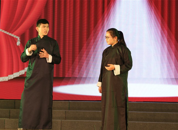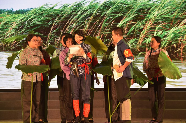 联欢现场气氛热烈,台下座无虚席,掌声雷动。其中,军训战斗歌曲大合唱震撼气势再现,使在场学生感同身受,忆起军训时的苦辣酸甜;小品《功夫》学生演技了得,逗得观众忍俊不禁;返校大学生的相声《古文新说》诙谐幽默,富有校园气息的桥段观众很有共鸣;拉丁舞《燃烧吧青春》时而婉约,时而奔放,将优美身姿融入节奏,带来美的享受;语文教研组的话剧《洪湖赤卫队》、英语教研组的舞台剧《白雪公主和七个小矮人》更是全员参与,场面恢宏,演技精湛,给观众带来视觉盛宴;化学教研组全体成员让大家领略了别有滋味的化学版《青花瓷》;数学教研组的《小鸡舞》则将晚会推入高潮,热烈的气氛感染了在场的每一位观众;大型舞蹈《南湖的船,党的摇篮》对所有师生进行了爱国主义教育,大家在欣赏优美舞蹈的同时铭记住了党的历史。