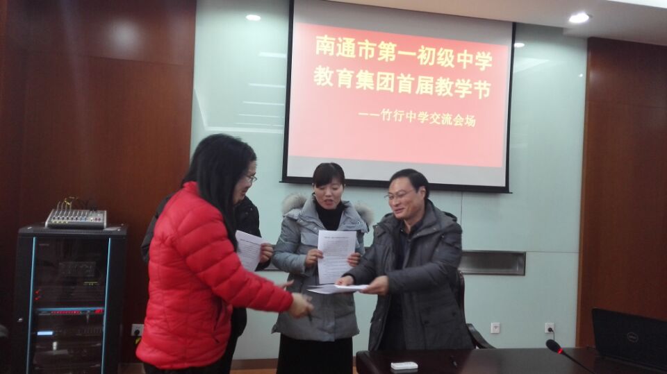 陈校长在发言中提到交流教师在教育均衡发展中意义重大,感谢各位老师为竹行中学的发展贡献力量,希望交流教师能把自身优势融入我校教育教学中。讲话结束后,陈校长为交流教师颁发了聘书。