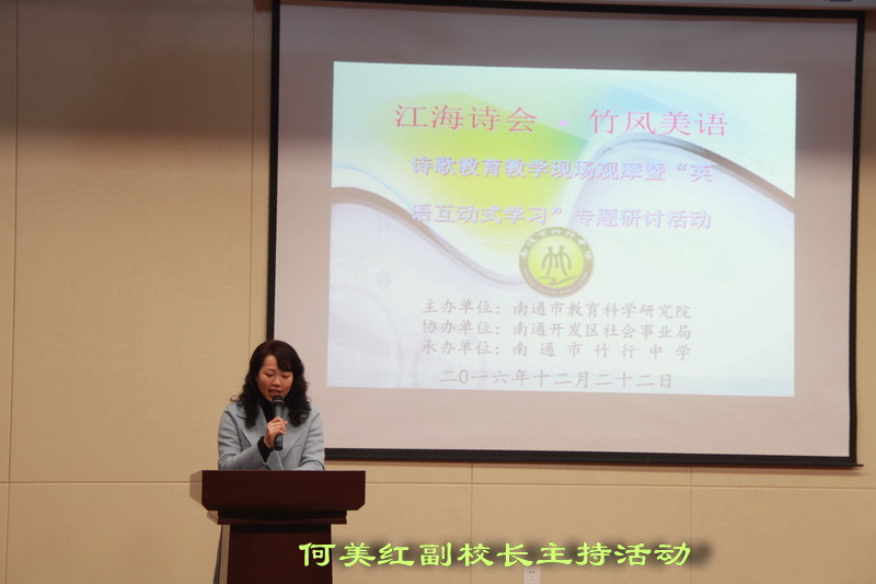 此次在竹行中学举办的活动,是“江海诗会”的第一次诗歌教育与学科融合专题研讨,主要集中在中英文诗歌的教育教学上,南通市教育科学研究院理论科进行了理念引领,南通市中学英语教研员黄利萍、江苏省中学英语特级教师曹群给予了专业指导,江苏省中学英语特级教师何美红牵头做出了尝试与探索,戴继华、周荣斌等专家从语文、“两课融合”等角度提出了建设性的意见与建议,为教育、教学的供给侧改革提供了具有价值的案例。