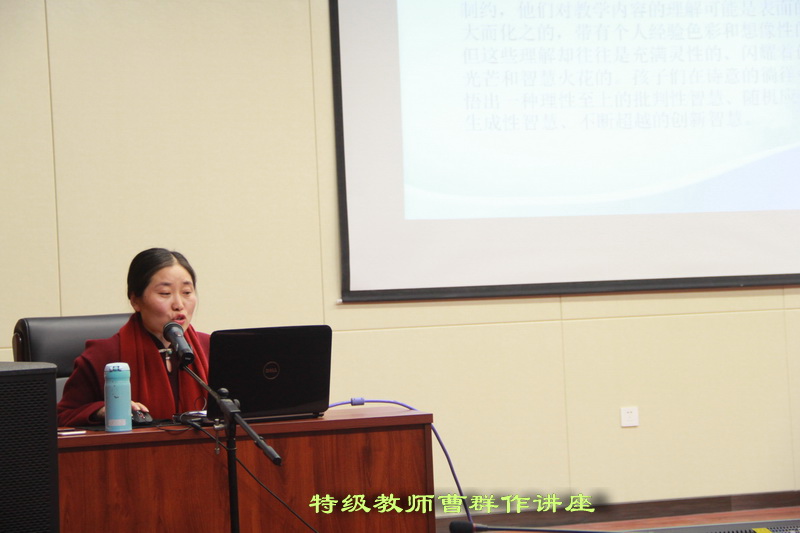 当天下午,竹行中学学生青春勃发、诗意盎然的活动展示,以清亮明快的英语演唱、生动美妙的英剧演出、自然激情的英文演讲等节目,赢得了观众们的一声声喝彩与赞美。随后,特级教师曹群《指向润泽童心的诗意课堂》,系统阐述了她对“诗意课堂”的理解、构建与实践,表现出了对儿童核心素养的强烈关注与对学科教学品质的不懈追求,让人深受启发。