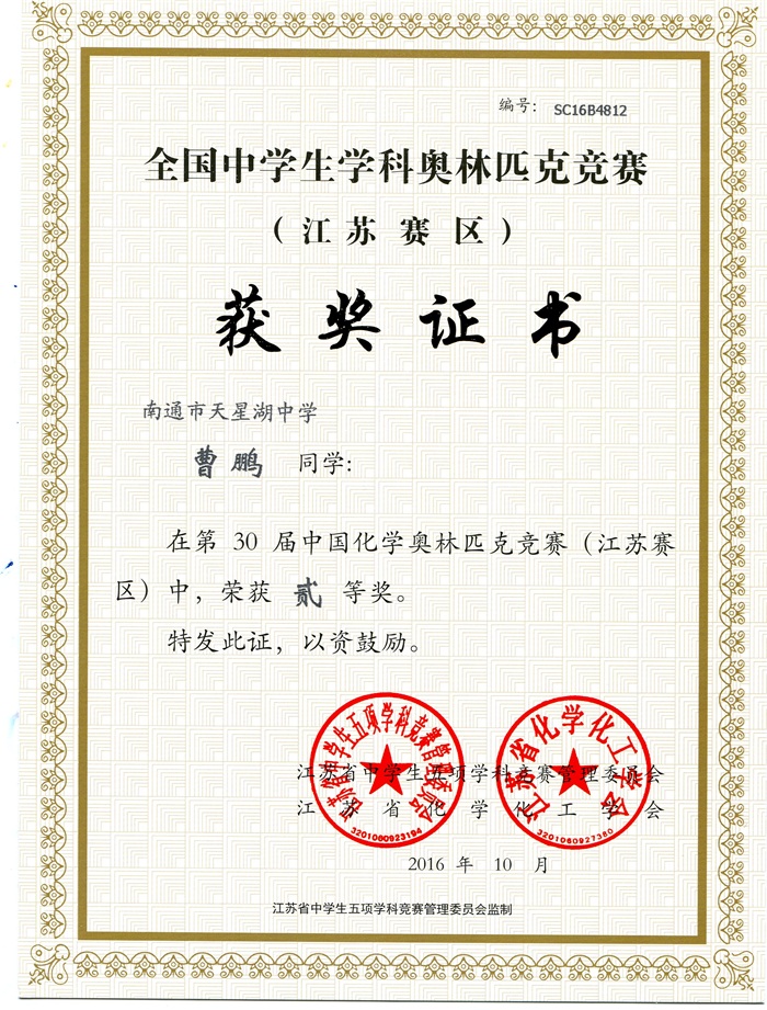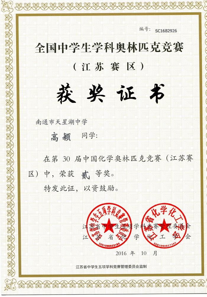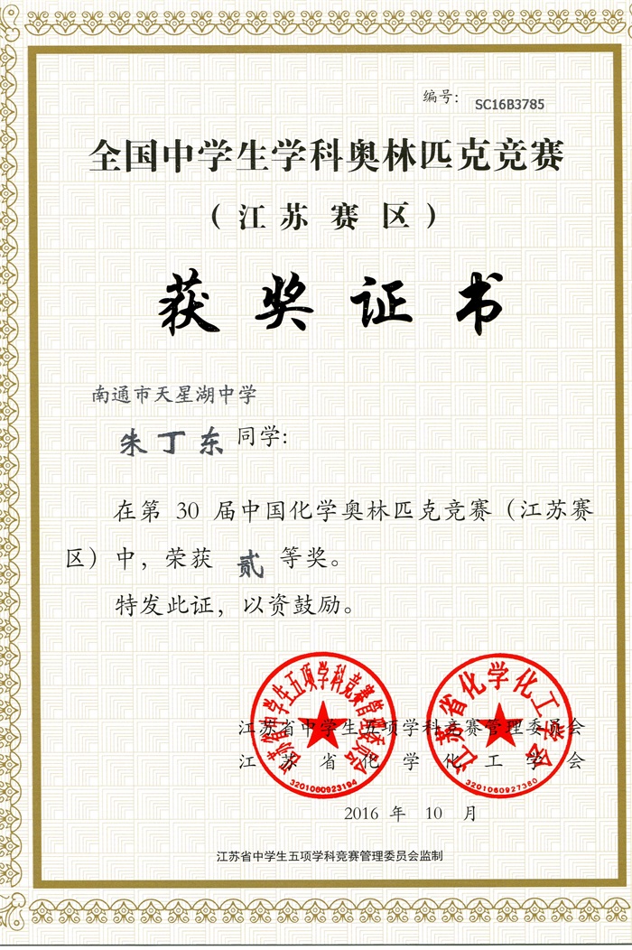 喜报 在2016年全国生物奥赛中我校32人获得江苏省二等奖、三等奖