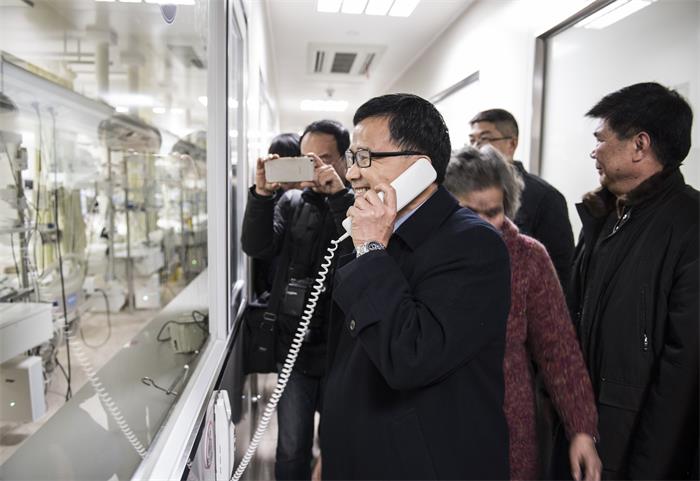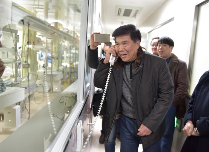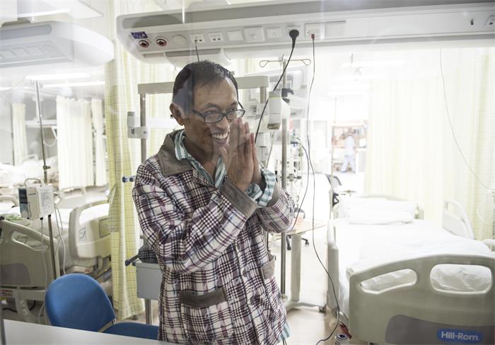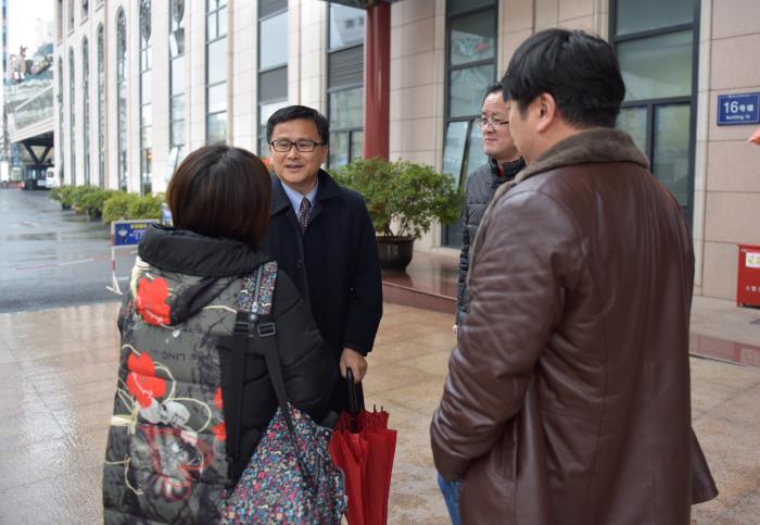 细雨霏霏,春寒料峭。2月8日下午,在南通开发区管委会范志强副主任带领下,区慈善会、文明办等部门领导,与江苏王子制纸有限公司陈卫兵总经理一行,从开发区冒雨驱车150公里,来到位于上海徐汇区的中山医院,看望慰问在这里进行肝脏移植手术的天星湖中学蒋竞群老师。刚刚从新加坡考察回国的王子控股株式会社中国总代表谭迪伦先生冒雨乘地铁同期到达医院。在中山医院重症监护室厚厚的隔离玻璃外,范志强副主任、谭迪伦总代表、陈卫兵总经理、周健会长等通过电话,与手术之后的蒋竞群老师对话。大家鼓励蒋老师,不要有后顾之忧、安心休息、坚定意志、早日康复。