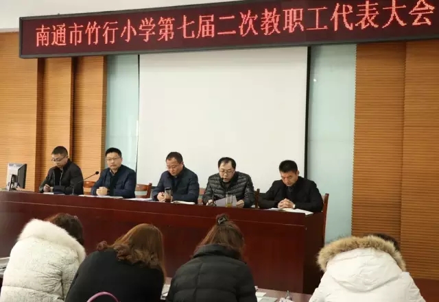2月12日上午,大会在庄严的国歌声中隆重开幕。会议听取并审议了朱军校长以“立校广济天下,立己自觉觉人,立学知行合一”为题的《学校2017—2019三年发展规划》、工会主席王建龙所作的《学校工会工作报告》、总务主任张小青所作的《学校财务工作报告》和副校长范成松所作的《提案解答报告》。