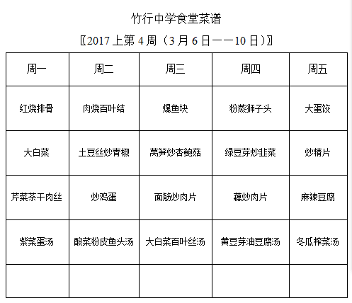 第4周菜谱