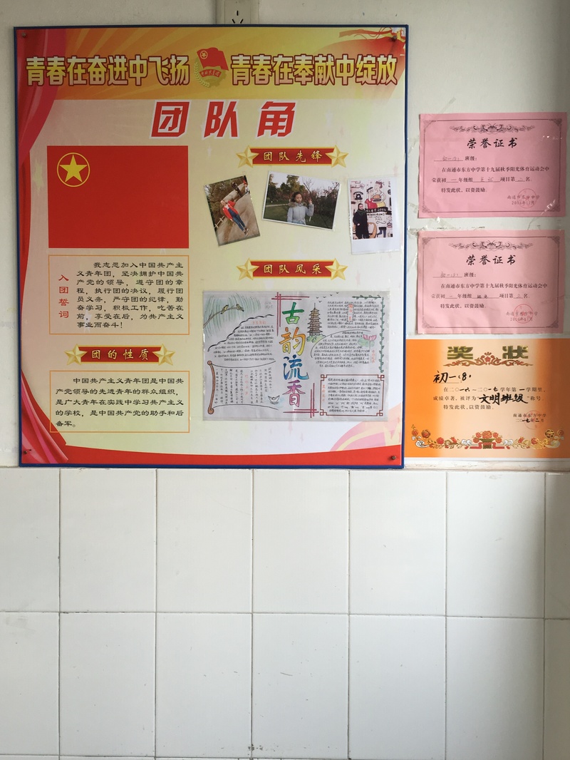 为贯彻省、市、区团委有关文件精神,进一步发挥中学共青团组织在中学生思想道德建设、促进中学生全面发展中的重要作用,大力开展有特色高品位的校园文化活动,夯实团队组织宣传教育阵地,全面服务青少年学生成长成才,学校团委于学期初组织了班级团队角布置评比活动。