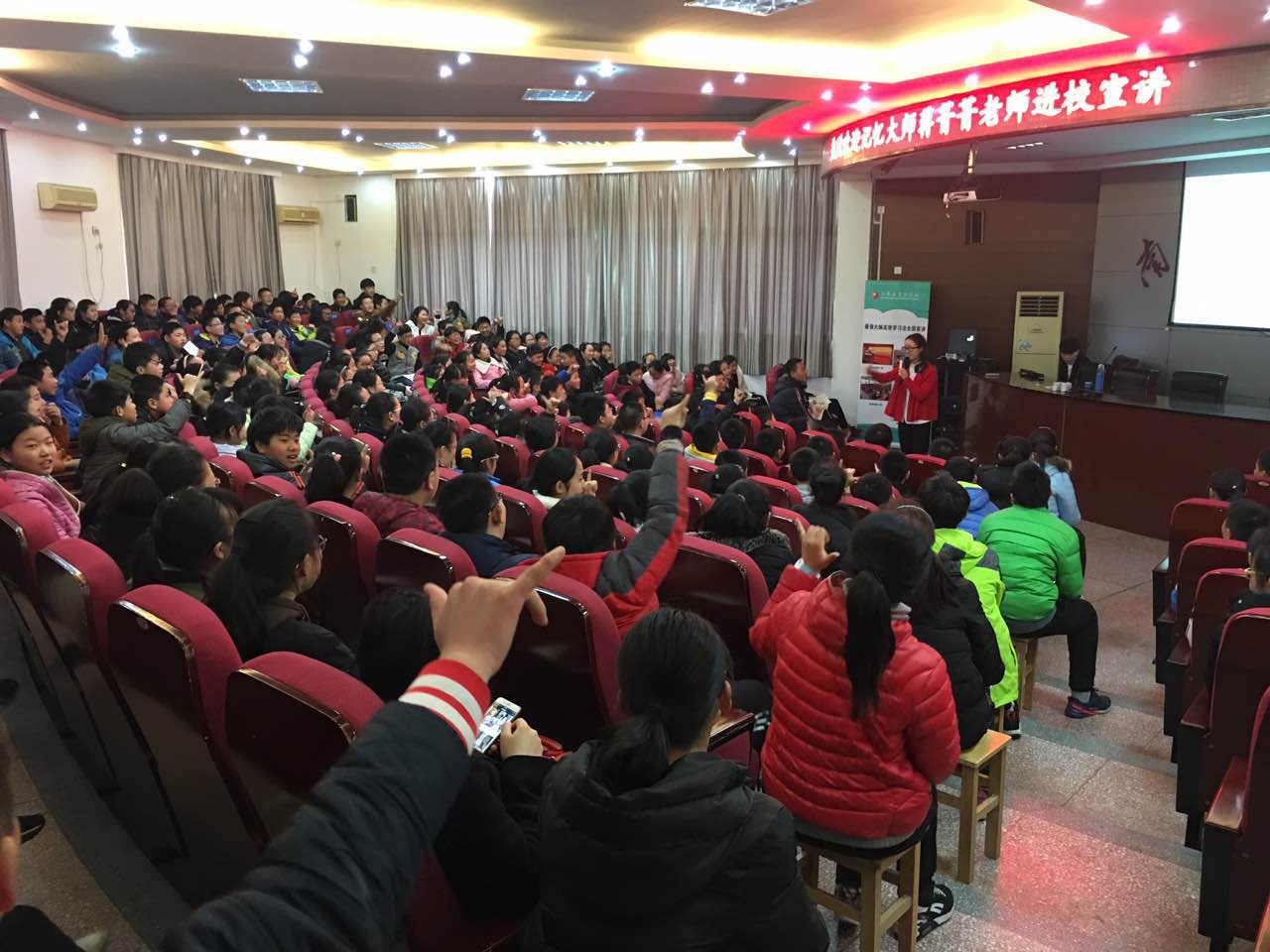 在活动现场,世界记忆大师蒋菁菁老师来为我校初一年级学生分批授课,推广快速记忆方法。蒋老师现场给孩子们展示了由孩子们随机报出的60个不规则数字,在很短的时间里,迅速顺序、倒序报出大屏上的数字,引起了孩子们阵阵惊讶声,接下来,大师们又讲解了“快速牢记无规则数字信息”、“1分钟掌握一个英语单词”、“、“2分钟记忆30个随机中文信息”等快速记忆技巧。现场,宣讲团的老师还现场表演了《弟子规》全书倒背如流,由学生们现场随意报出《弟子规》一书的页码和第几行,老师现场背出书的内容,或者,由学生读出书的内容,老师说出是第几页、第几行的内容。深入浅出的讲解,让学生们受益匪浅,经过简单的训练,孩子们也能现场快速地背出30个没有任何关联的、随意的中文词汇,现场完成脑力测试卷。听了大师们的讲解,学生们纷纷感叹“原来记忆英语单词、背诵课文可以那么简单”!