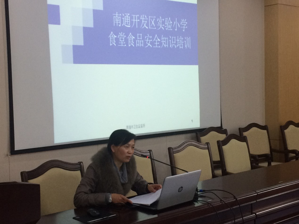 为进一步加强学校食堂卫生安全工作,不断提高学校食堂管理人员、从业人员卫生安全责任意识,维护广大师生身体健康和生命安全,构建和谐平安校园,杜绝食堂卫生安全事故的发生,实验小学3月10日下午邀请开发区市场监督管理局王卫东局长、胡桂琴主任为学校食堂从业人员进行了食堂安全知识培训。