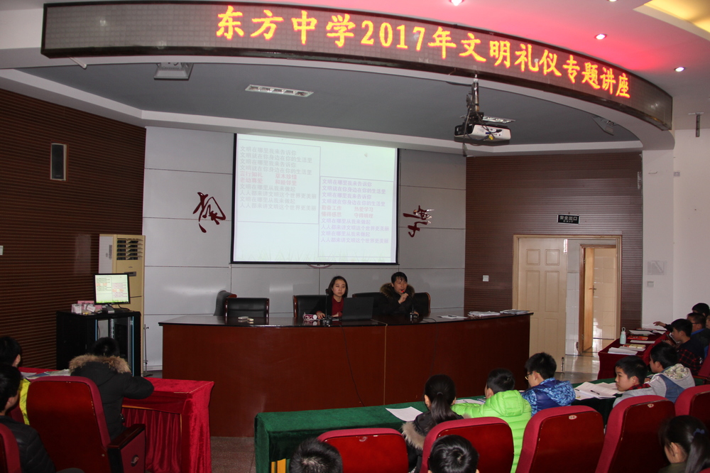 文明礼仪是中华民族的传统美德,是律己敬人的一种行为规范,它蕴含着抽象的基本道德要求。古人云:“不学礼,无以立”,讲的就是以礼修身,以礼修德。为了更好地践行八礼四仪,落实立德树人的教育任务,3月14日中午,由政教处、团委组织初一初二年级学生代表,聘请政治组钱玉龙老师,在二阶举行了2017年文明礼仪专题讲座。