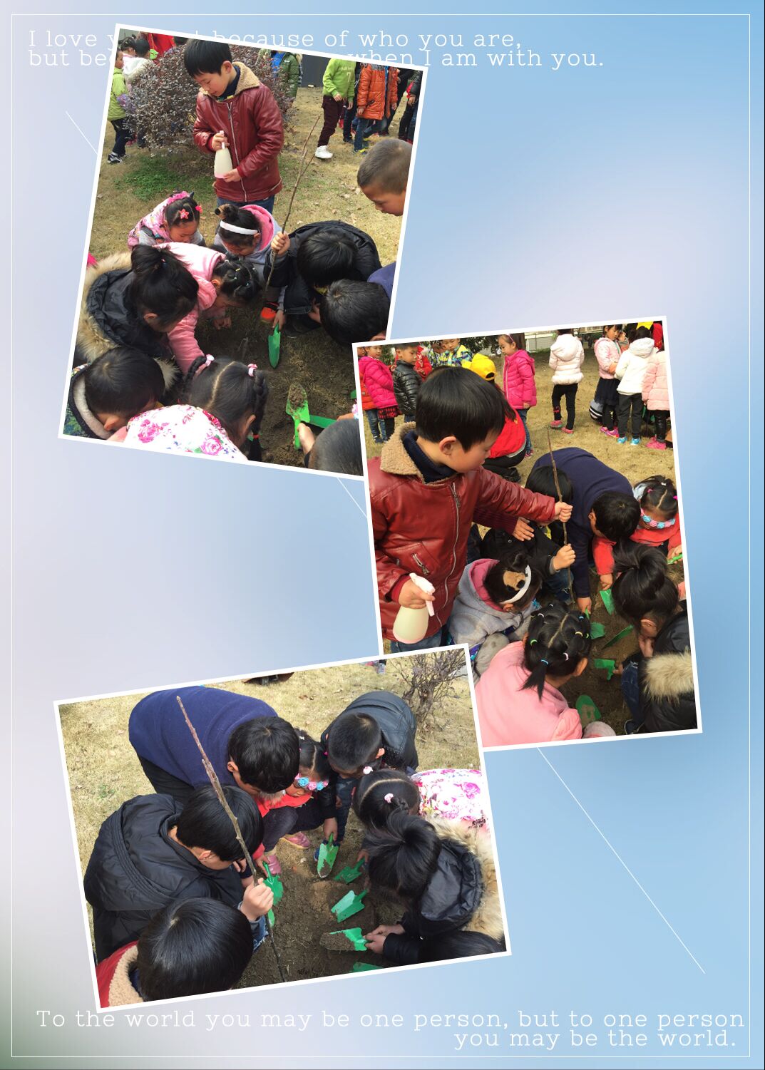 小班孩子种的是桔子树,这是孩子们入园以来第一个植树节,别看他们小,一个个热情又兴奋,又是那么好奇,还不停的问老师“老师,我们种的桔子树什么时候长出桔子,长出的桔子是甜的还是酸的呢”。