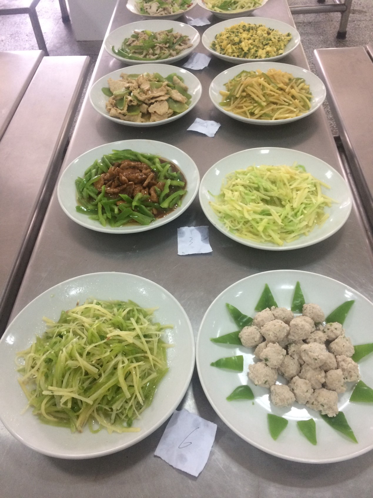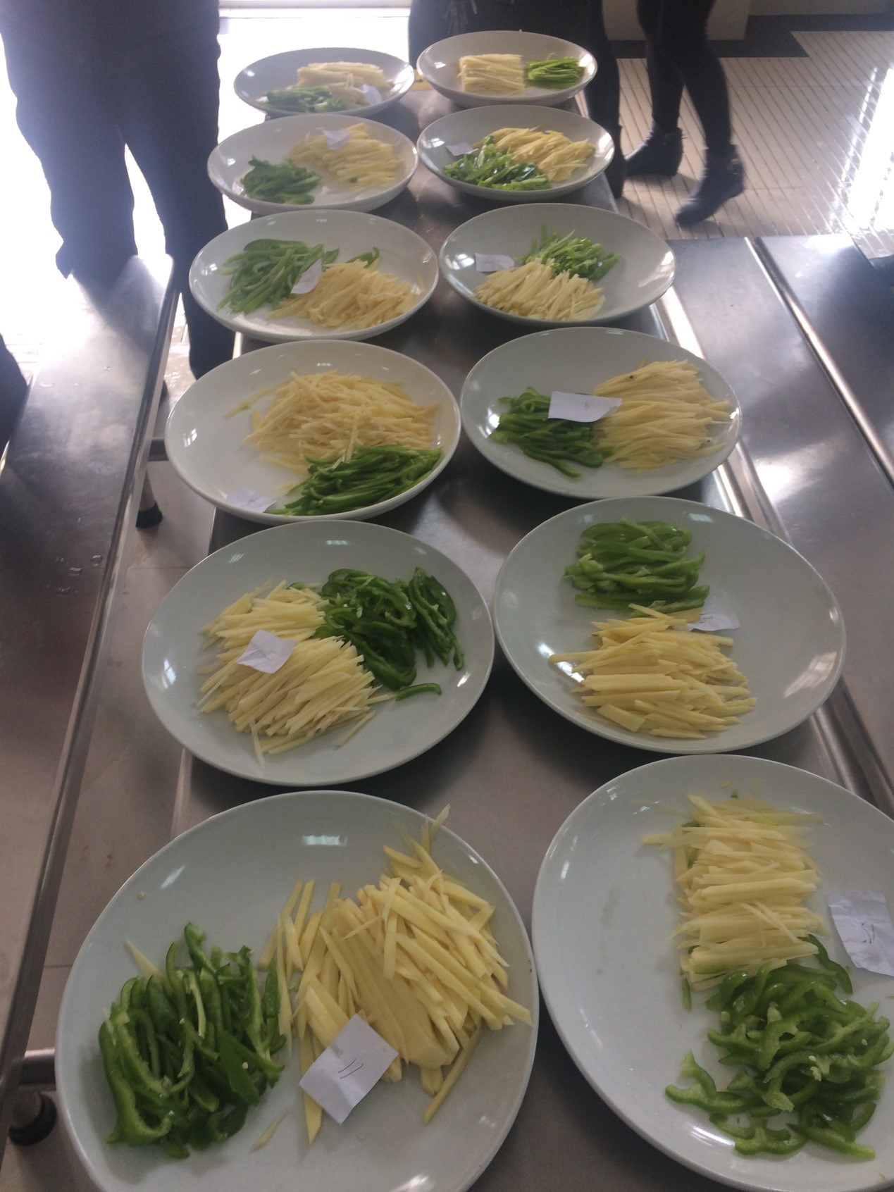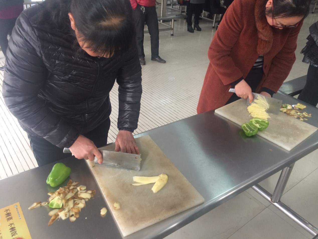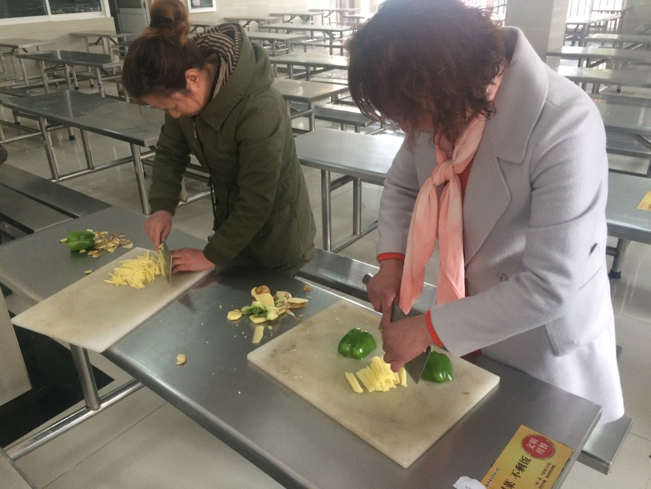为了全面提高食堂员工职业操作技能,增强服务意识,提高服务质量,促进员工之间的交流和学习,提升团队意识的综合素质和业务技能,创新为广大师生服务的方式、方法,不断改善饭菜花色品种和质量,结合实际情况,实验小学3月16日、3月17日开展食堂从业人员技能比赛活动。此次比赛分厨师,辅工两个组别,每个组别由实际操作和理论知识两个项目组成。辅工组在规定时间内将土豆青椒清洗、切丝、装盘,厨师在规定时间内用肉、青椒、土豆、莴笋四种食材做2道菜。评委从色、香、味、形等方面进行了综合评审,评出了一等奖4名,二等奖8名,三等奖26名。通过这次技能大赛,食堂在服务和卫生、技能操作中都取得了良好的效果,有了对比,才知自身的不足。不仅为食堂员工相互交流、切磋厨艺搭建了良好的平台,促进他们学习技能的积极性,也极大的促进了我校饮食服务工作再上新台阶。