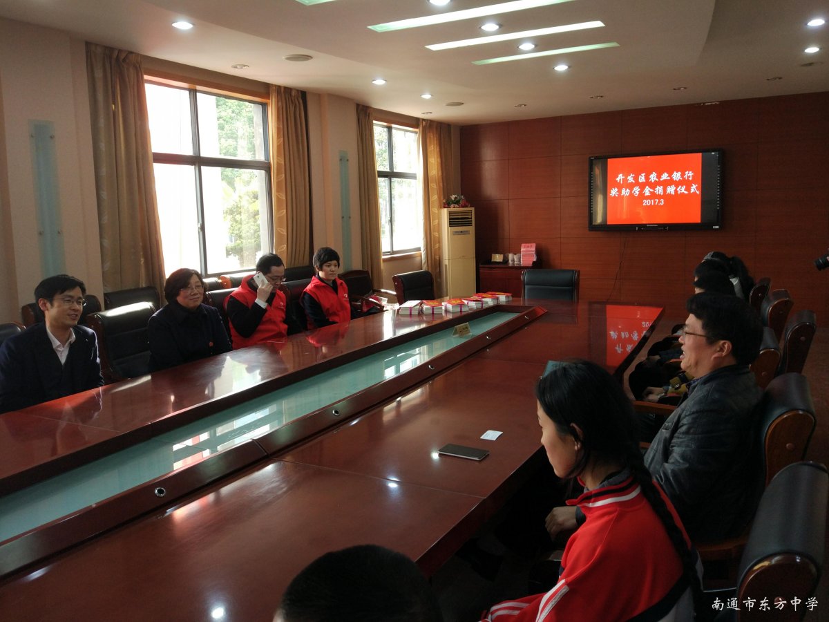 3月17日下午,开发区农业银行曹行长、丁主任以及农业银行的一批志愿者,不顾工作繁忙,在下午银行的会议间隙赶到我校,给我校6位家庭困难的学子来春天里温暖与爱心。