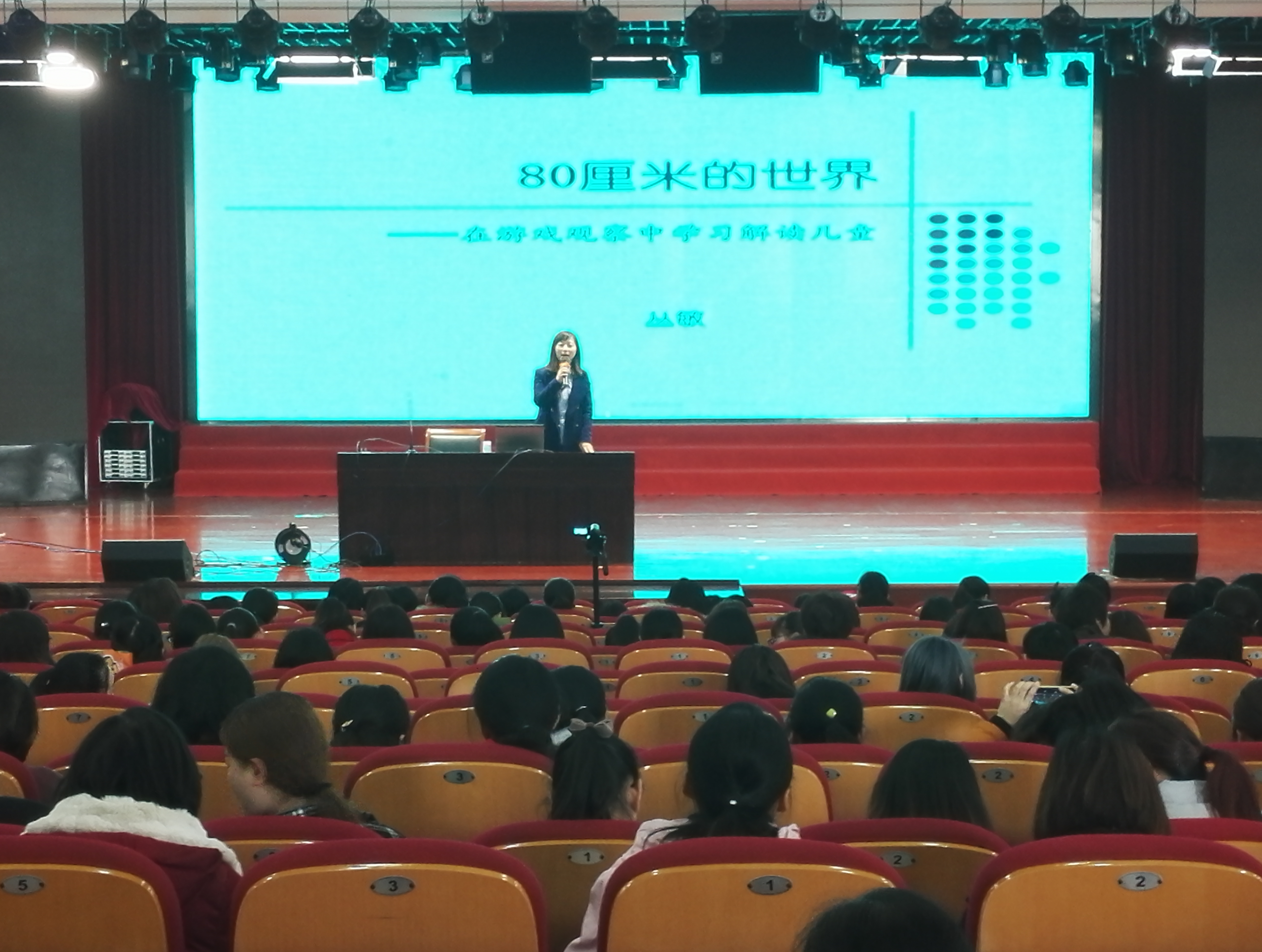 丛敏做了《80厘米的世界——在游戏观察中学习解读儿童》专题讲座,她从游戏的重要性、对游戏观察的认识误区、如何看待游戏观察、游戏观察的作用、要素等方面解读儿童、观察儿童。何峰的《课程游戏化理念下幼儿户外学习环境创设策略》分析了户外环境创设常见的问题、幼儿园户外(游戏)场地的类型,讲解了幼儿园户外主要活动区的创设策略、户外学习环境创设评估及户外学习环境评价标准。