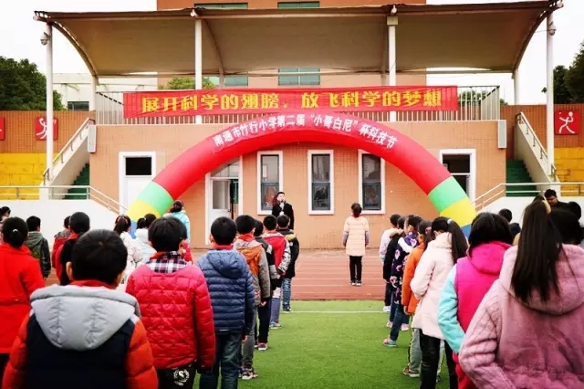 2017年3月22日上午,竹行小学在操场上举行了第二届“小哥白尼”杯科技节开幕仪式。