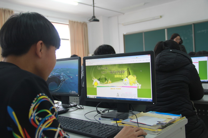 在老师的指导下,学生们登陆专页,深情点击“鞠躬”“献花”等按钮,认真参与网上祭拜,并撰写活动留言,表达对革命先烈的缅怀和崇敬之情。