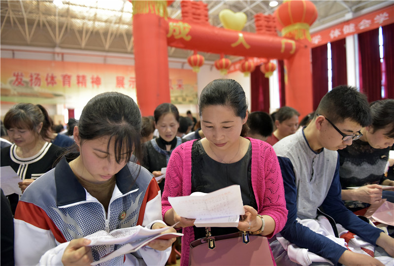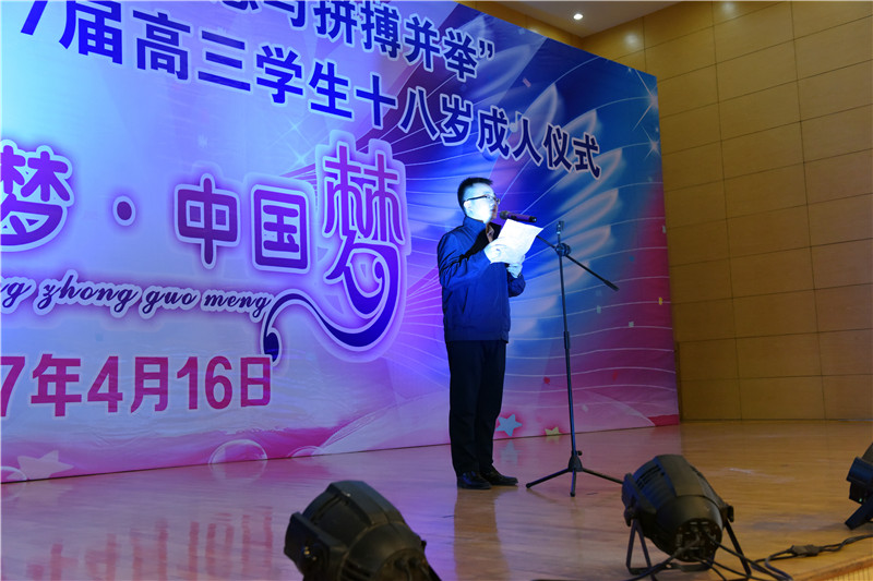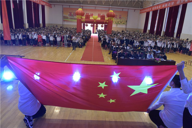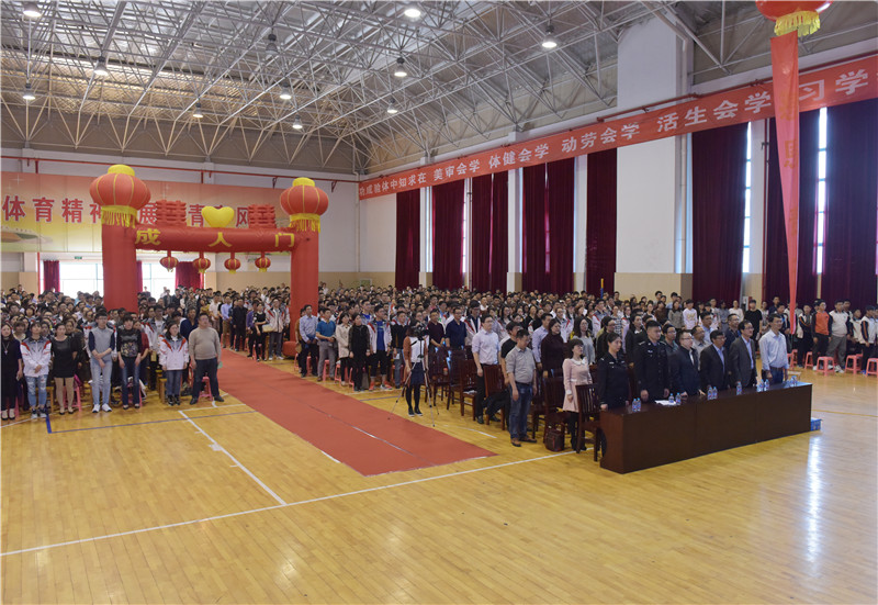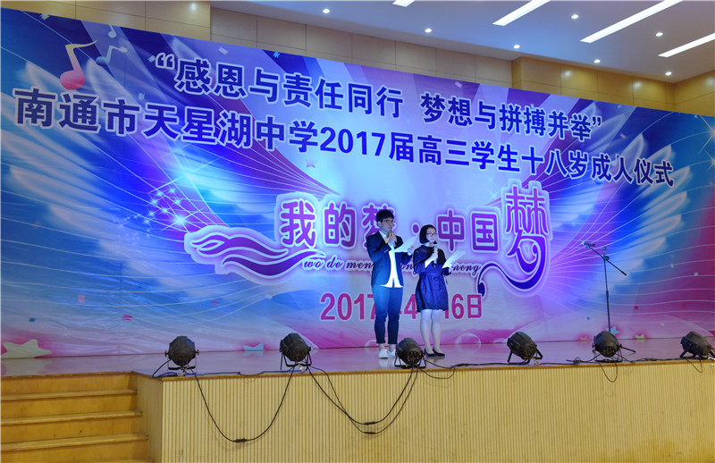 一道成人门,是通向美好明天的起点;两面励志幅,是承载远大理想的翅膀。2017416日下午,南通市天星湖中学在学校风雨操场举行了以“感恩与责任同行 梦想与拼搏并举”为主题的高三学生十八岁成人仪式。574名年满十八周岁的青年学生面向鲜艳的五星红旗庄严宣誓,立志为实现个人成长的“成才梦”和中华民族伟大复兴的“中国梦”而不懈努力。领导的鼓励、家长的嘱托、老师的教导化作了爱的暖流,让学生无比感动、让校园无比温馨。为了这次活动学校做了精心筹备,会场布置、家长迎接、领导致辞、嘉宾发言、学生宣誓、主持串联、领走成人门等环节无一不反复推敲、精益求精。
