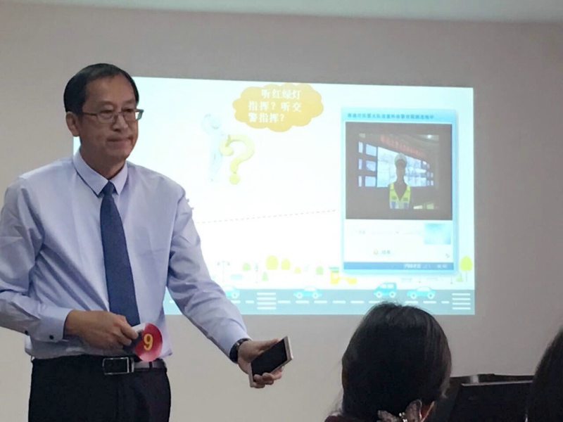 帅校长的课贴近生活,儿童味十足,设计了孩子们春游这一情境中学习道路交通法规的系列活动。整堂课节奏张弛错落,起伏跌宕。一开始轻松欢快地春游,认识交通标志,模拟过马路;接着幽默风趣地角色互换,现场连线交警大队的交警叔叔,诵读交通安全儿歌;再借新闻播报展示不遵守交通的严重后果,凝重的氛围中坦诚相劝不遵守交通安全的行为;在感恩的情境中引领孩子们明白“无声的朋友”真情的守护,强化了交通安全意识。帅校长的课一结束,评委老师们就忍不住当场给予了很高的评价:“文似看山不喜平,真正的好课就该如此。思路清晰,板块结构大气,跌宕起伏!”比赛结束的评点会上,评委们更是罕见地给出了“这个第一名,当之无愧,毫无争议”的评价。