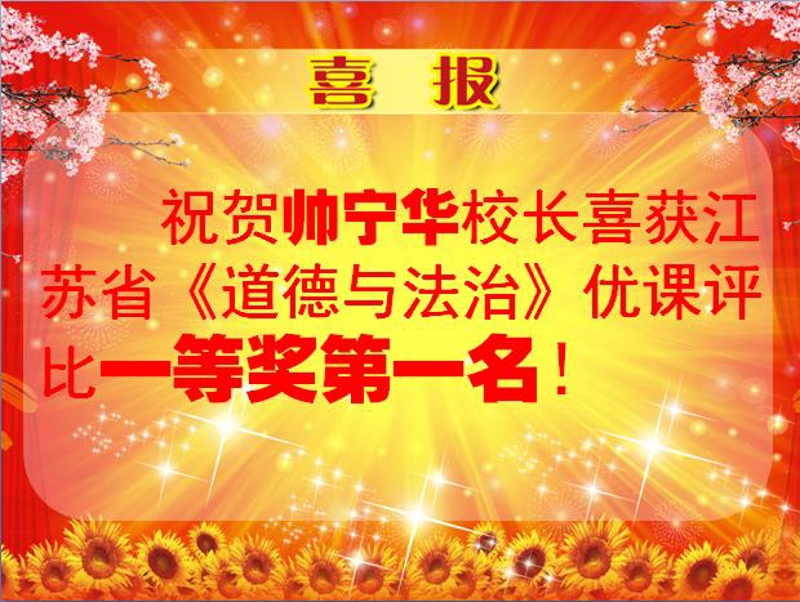 高师附小帅宁华校长获江苏省《道德与法治》优课评比一等奖第一名