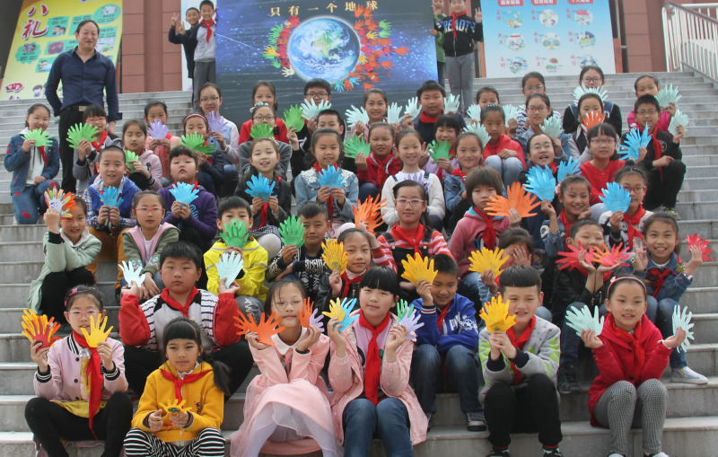 活动中,学校少先队大队部利用国旗下的讲话时间宣传世界地球日的有关知识,让全体学生了解保护地球的重要性。接着,学校利用大屏幕及各班教室晨会课展播《世界地球日》宣传视频,并开展了主题班队课。最后,学校举行了环保倡议“只有一个地球”小手写宣言活动:每班推荐10名同学在彩色纸上描画下自己的一个手印轮廓,用剪刀沿手形轮廓剪下,并在描画的手形内写下对“世界地球日”活动的感悟、倡议或宣传语等。