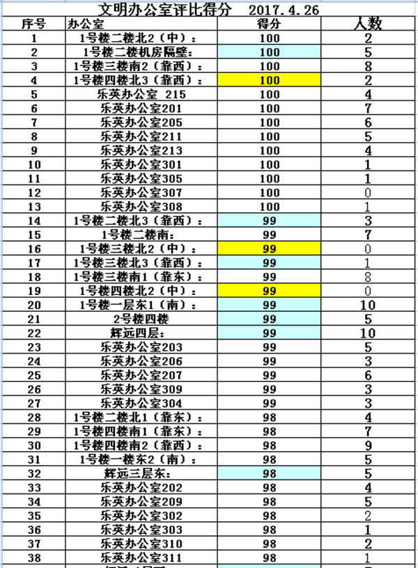 4月26日中午,我校进行了本学期“文明办公室”评比,评委们通过将近1个小时紧张工作,对全校大大小小60个办公室进行了认真仔细的检查,分别评出了一、二、三等奖。