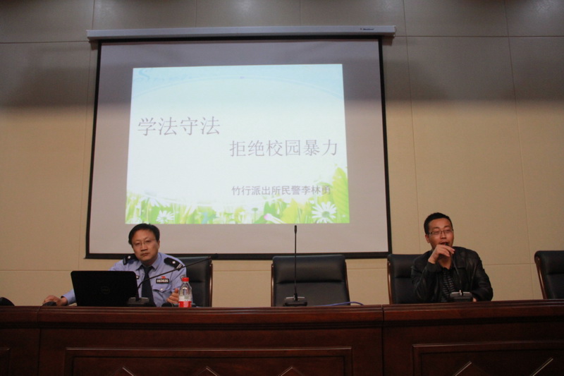 李警官引用一些生动鲜活、触目惊心的青少年犯罪案例,联系实际,以案释法,告诫同学们必须引以为戒,增强法制观念。李警官还为同学们介绍了当遇到校园暴力侵害时,如何化解危机,并运用法律维护自己的合法权益,保障生命安全。