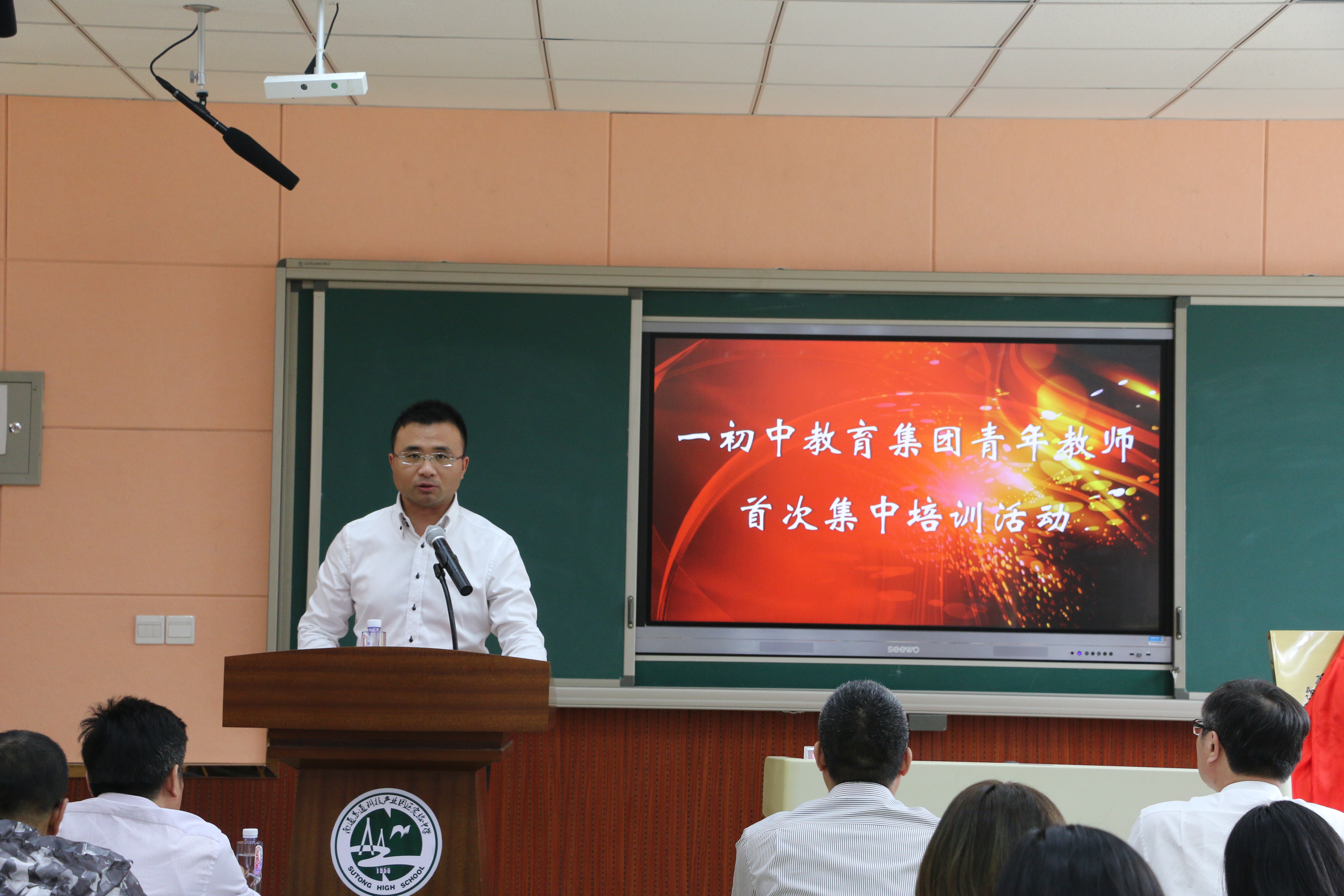 本次培训活动由南通苏通科技产业园区实验中学沈明明副校长主持,盛建新校长致欢迎辞。在各位领导为集团青年教师培训基地揭牌后,季春华处长做动员讲话。此次培训内容丰富,我校作为青年教师培训基地,对青年教师在教学中遇到的问题进行了调研,以此作为前提,开展定单式培训。既有专题讲座,又有课堂观摩活动。