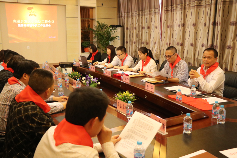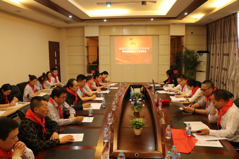 激情飞扬的红五月,南通开发区少先队工作会议暨陈海娟优秀辅导员工作室例会于5月25日下午在竹行小学第一会议室举行。团市委学少部部长周滢、开发区社会事业局教育处处长季春华、开发区团工委副书记杨光、开发区少先队总辅导员陈海娟、各校分管德育校长、各校大队辅导员以及工作室全体成员参加了会议。会议由杨光书记主持。