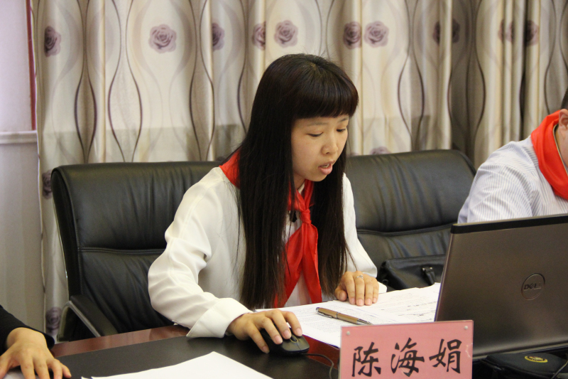 陈海娟优秀辅导员工作室领衔人、区少先队总辅导员陈海娟老师向与会人员介绍了工作室的初衷、目标、工作模式与工作载体,还就上半年少先队工作和工作室的工作作了具体安排,特别就工作室的研究课题《全童入队背景下少先队员光荣感、归属感教育的实践研究》作了详细解读。