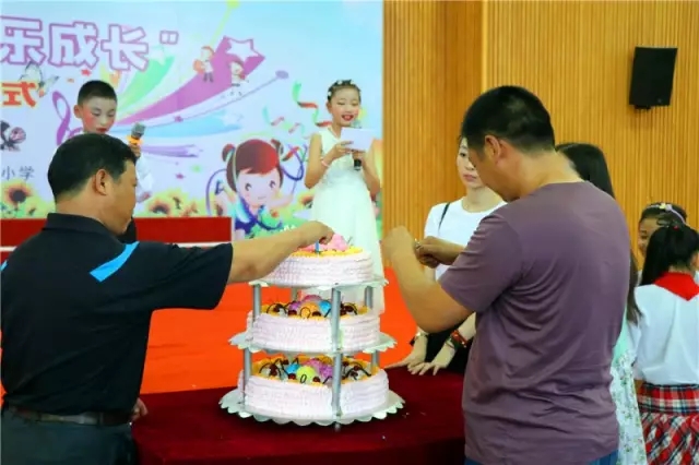 爸爸妈妈为孩子唱起生日歌,家长和老师们为孩子送上十岁生日蛋糕。最后在庄严的宣示声和谈老师的深情寄语中结束了整个仪式。