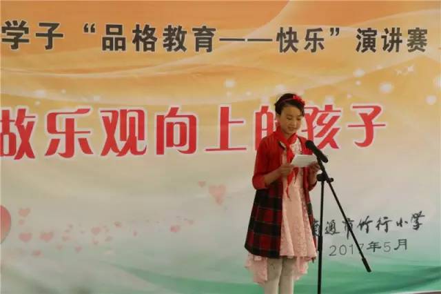 “不管做任何事情,只要努力就会成功,只要成功就会快乐!在学校举行的班级足球联赛中,我一人独进两球,为班级争光,我感到无比高兴和自豪……”这是竹行小学近日举行的“品格教育——快乐”主题演讲赛的现场,一位选手发自内心的快乐宣告。