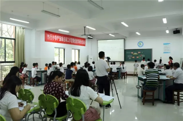 6月15日,天朗气清,竹行小学汇知楼开课室里,严亚雄名师工作室成员和全校数学老师,在聚精会神的观摩由工作室青年教师胡琴、盛佳瑜执教的两节数学复习课。